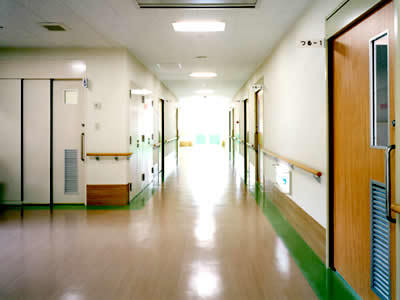移動に車椅子が必要な方も安心なバリアフリー設計の広い廊下になっています。大きな窓から差し込む光が四季を感じさせ、心地よい生活を演出します。